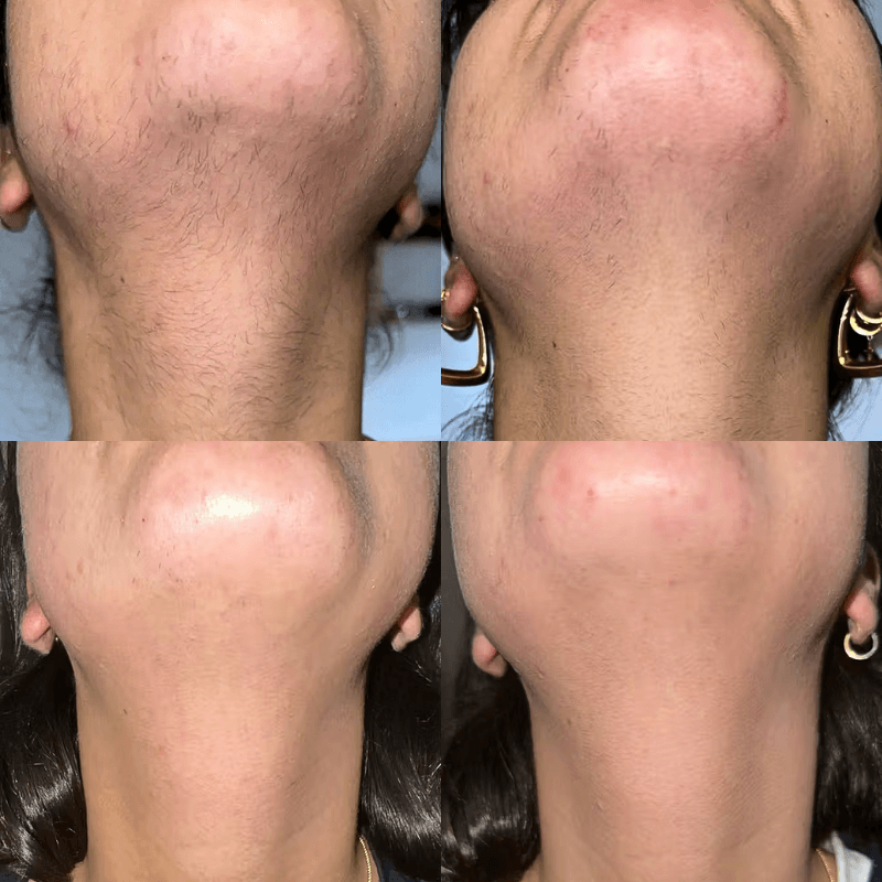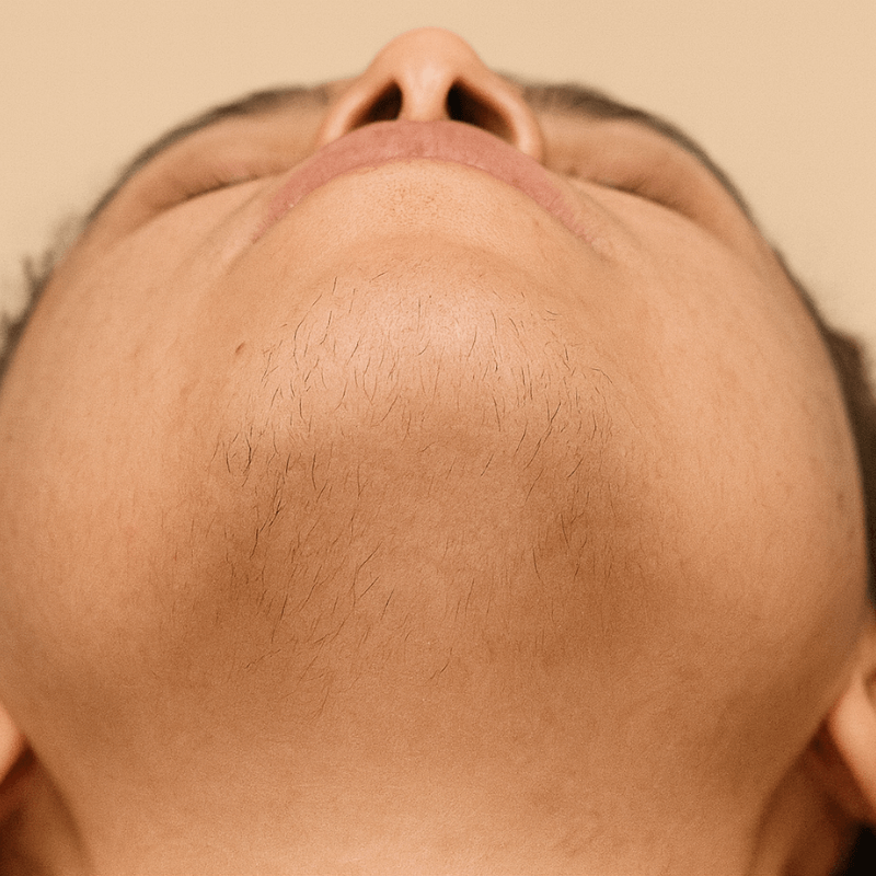 Engineered for dark hormonal hair, our professional-grade Intense Pulsed Light technology safely targets stubborn hair on face, chin, and body.