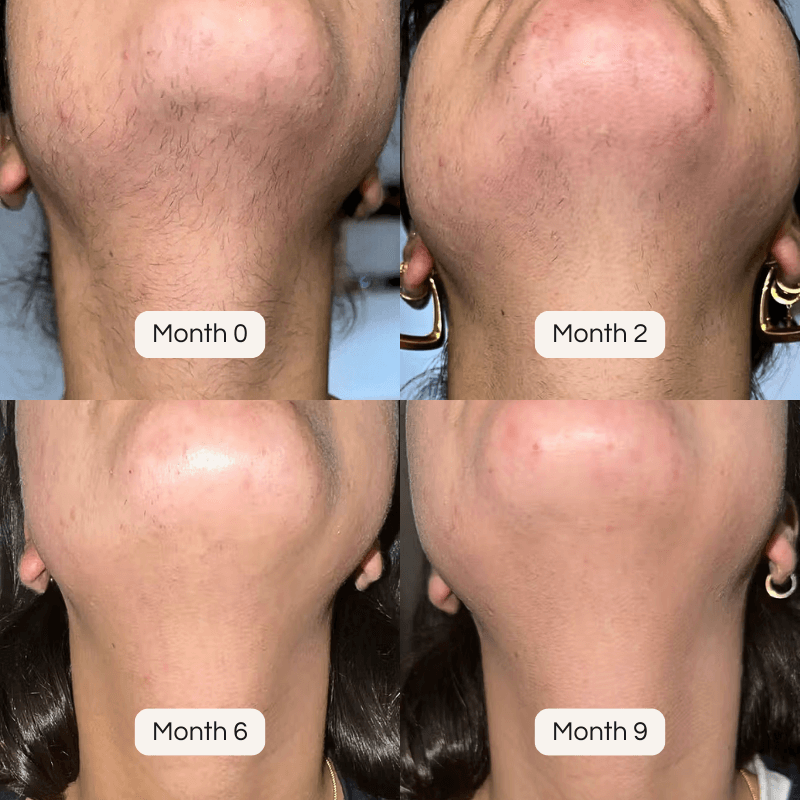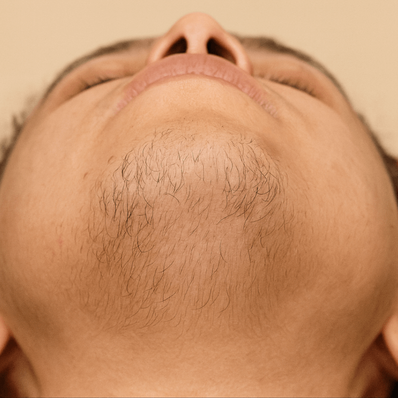 MONTH 3-4: Noticeable reduction in hair density and significant improvement in daily shaving needs.